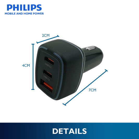 Philips 45W Triple Port Fast Car Charger with PD 20W & PD 45W