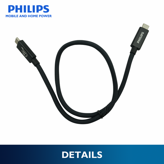 Philips 240W 0.5m USB-C to USB-C Cable Fast Charging, 40Gbps USB4 Data Transfer, Braided Thunderbolt 4 Compatible