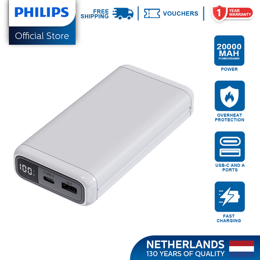 Philips White 22.5W 20000mAh Li-polymer PD Powerbank with LCD Display