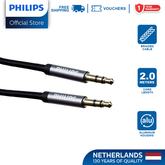 Philips 3.5mm to 3.5mm 2Meters Titanium Plated Aluminum Housing PVC Outer Cover Audio Cable