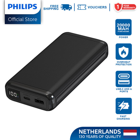 Philips Black 22.5W 20000mAh Li-polymer PD Powerbank with LCD Display