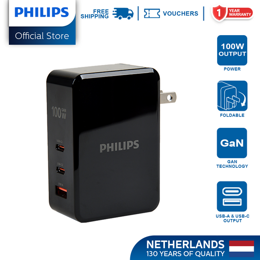 Philips 100Watts USB C 3-Port Compact Fast PPS Wall Charger