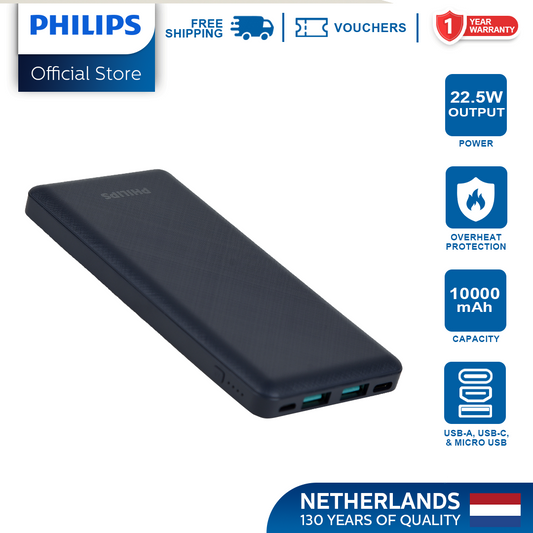 Philips Blue 22.5W 10000mAh PD Fast Charger Powerbank USB-C USB-A Outputs