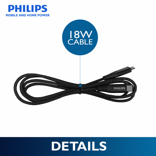 Philips Black 1.2m 18W USB C Type-C to Lightning Braided Cable MFi Certified iPhone Charging Cable
