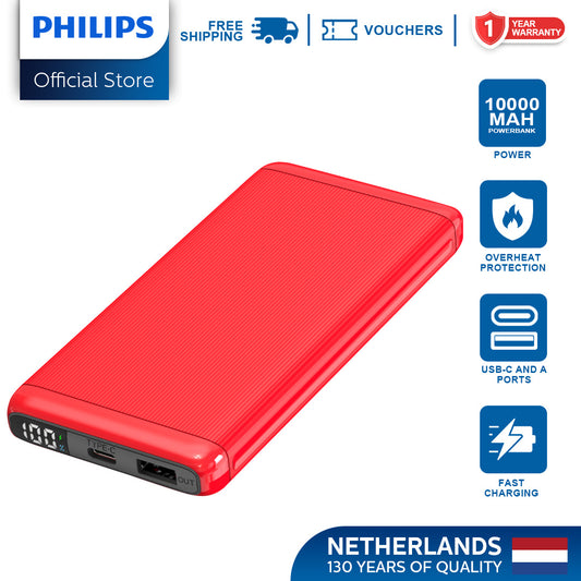 Philips Red 10000mAh 22.5 Watts USB-C Slim Fast Charging Powerbank
