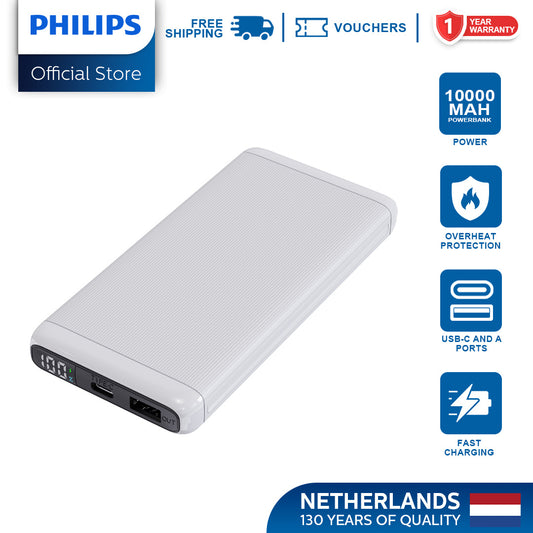 Philips White 10000mAh 22.5 Watts USB-C Slim Fast Charging Powerbank