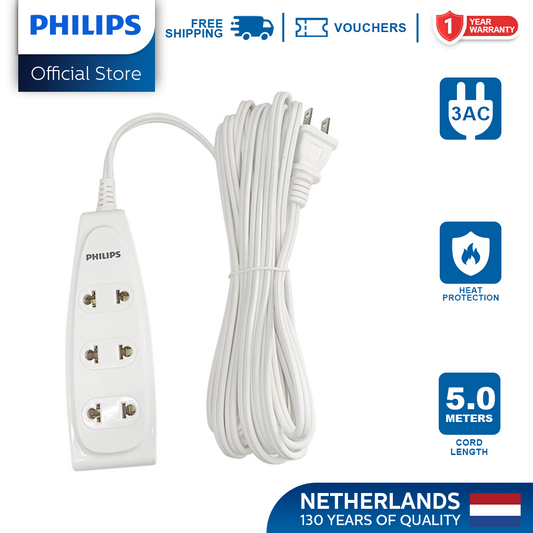 Philips 3-Way Extension Socket Non-Flammable Material 5 Meters Cord Power Multiplier