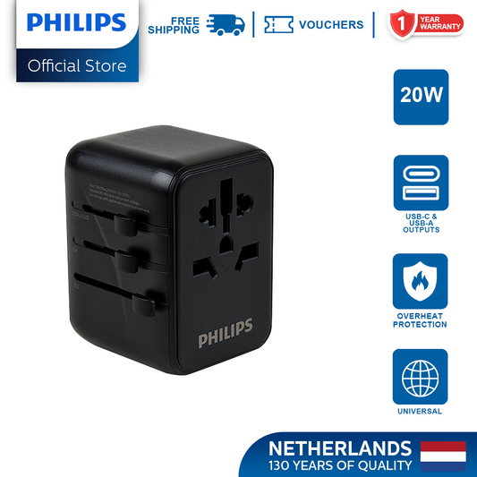 Philips 20W Fast Charging Multi-Port Universal Socket Non Grounding US/EU/AUS/UK plugs Quick Charge Adaptor